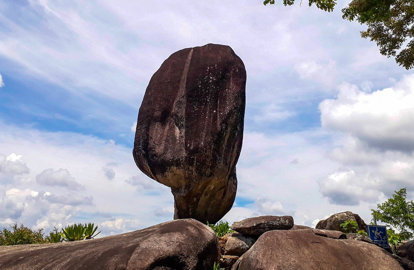 หินพัด ก้อนหินมหัศจรรย์มีลักษณะเป็นหินขนาดใหญ่ที่วางทับกัน โดยฐานไม่แนบสนิทสามารถมองทะลุผ่านได้ซึ่งเป็นความแปลกประหลาดอย่างมาก ความสูงประมาณ 5 – 6 เมตร มองดูคล้ายพัด เชื่อกันว่าเกิดขึ้นมานับพันปี มีลักษณะคล้ายพัด บ้างก็ว่าคล้ายรูปหัวใจหลังจากนั้นได้มีคนในพื้นที่ได้ขึ้นไปชมทัศนียภาพโดยรอบของหินพัดพบว่าหินพัดเป็นรูปหินตั้งไม่ยึดติดเป็นเนื้อเดียวกันกับฐานมีลักษณะคล้ายกับ “พระธาตุอินแขวน”ในประเทศพม่า